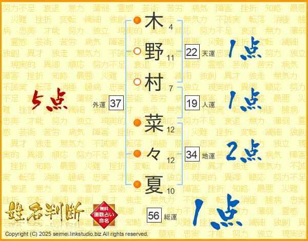 木野村菜々夏さんの外運は37画の5点!