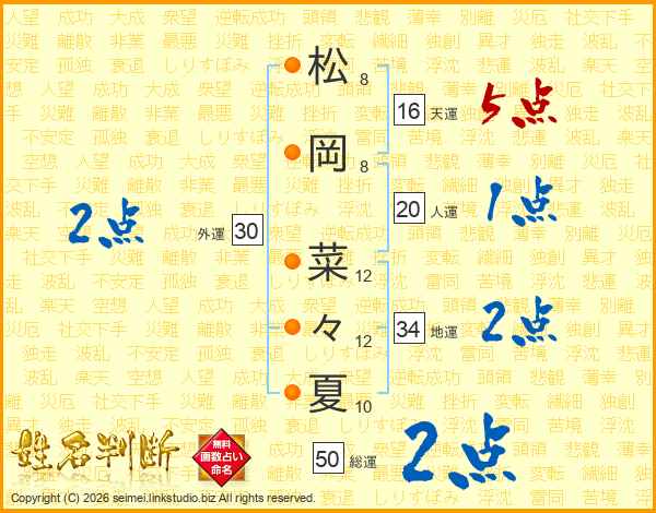 松岡菜々夏さんの地運は34画の2点!