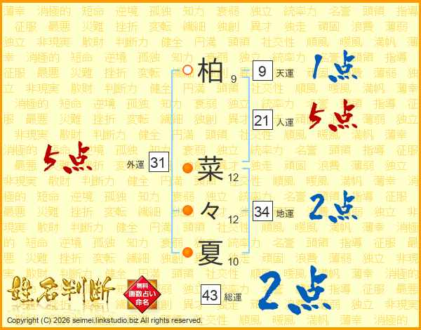 柏菜々夏さんの外運は31画の5点!