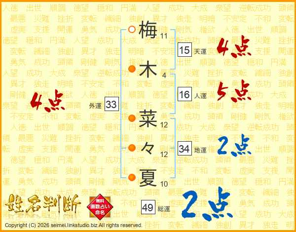 梅木菜々夏さんの外運は33画の4点!