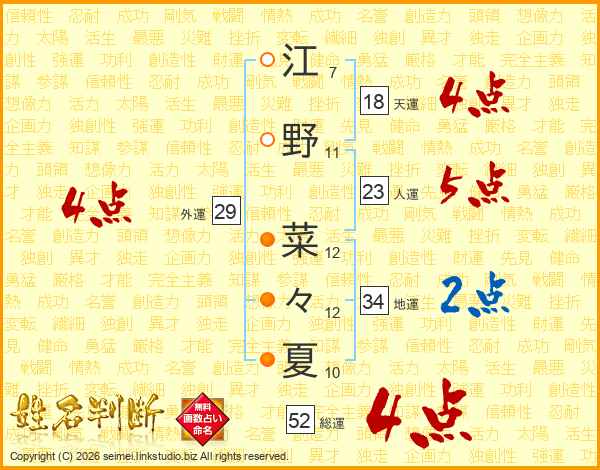 江野菜々夏さんの総運は52画の4点!