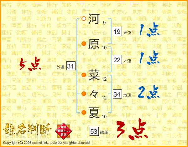 河原菜々夏さんの外運は31画の5点!