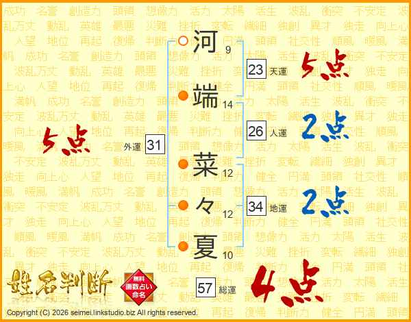 河端菜々夏さんの外運は31画の5点!