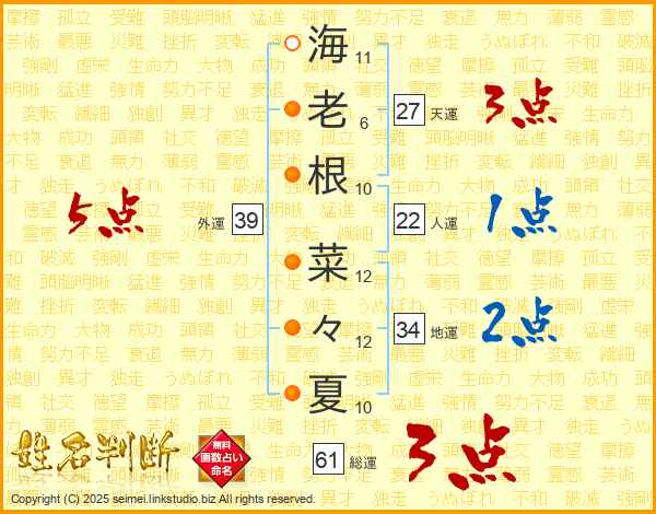 海(11画)老(6画)根(10画) 菜(12画)々(12画)夏(10画)