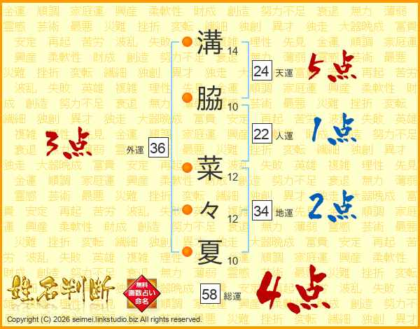溝脇菜々夏さんの総運は58画の4点!