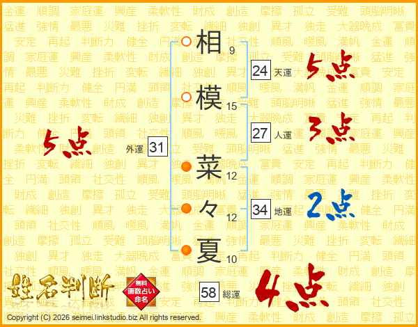相模菜々夏さんの外運は31画の5点!