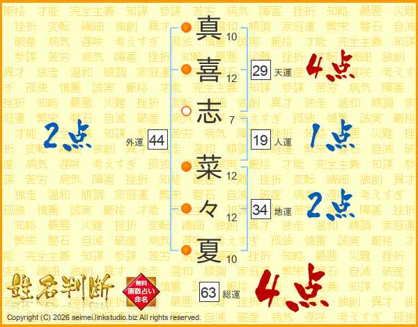 真喜志菜々夏さんの総運は63画の4点!