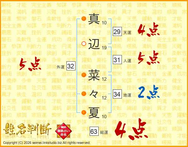 真辺菜々夏さんの総運は63画の4点!