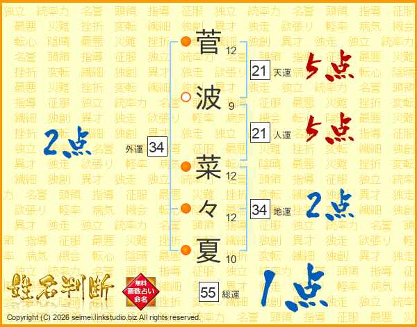 菅波菜々夏さんの総運は55画の1点!