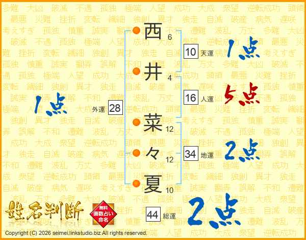 西井菜々夏さんの総運は44画の2点!