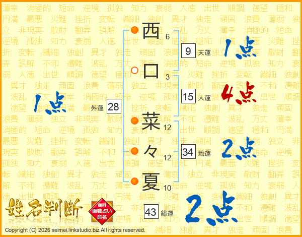 西口菜々夏さんの総運は43画の2点!