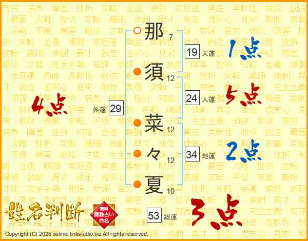 那須菜々夏さんの総運は53画の3点!