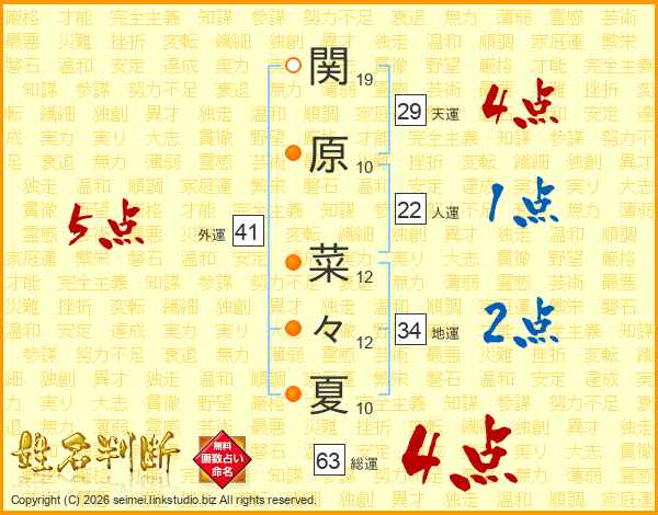 関原菜々夏さんの総運は63画の4点!