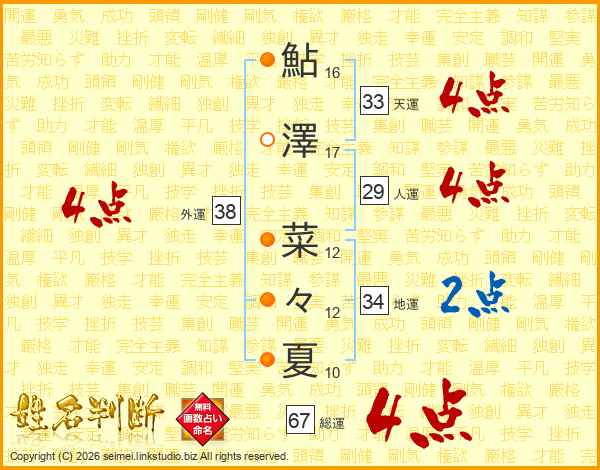 鮎澤菜々夏さんの外運は38画の4点!