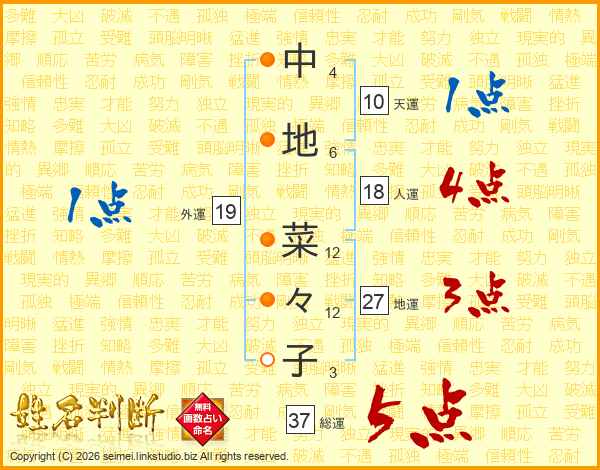 中地菜々子さんの総運は37画の5点!