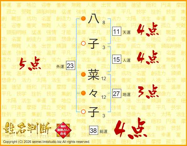 八子菜々子さんの総運は38画の4点!