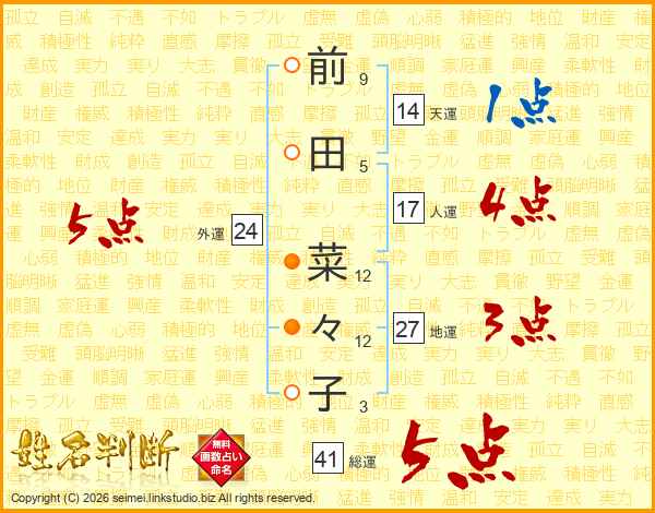 前田菜々子さんの総運は41画の5点!