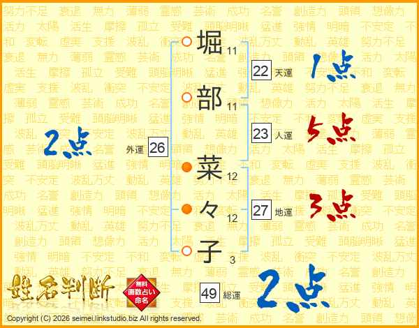 堀部菜々子さんの総運は49画の2点!