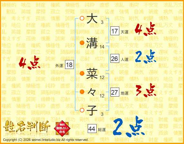 大溝菜々子さんの総運は44画の2点!