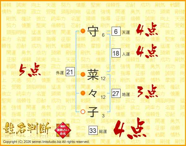 守菜々子さんの総運は33画の4点!