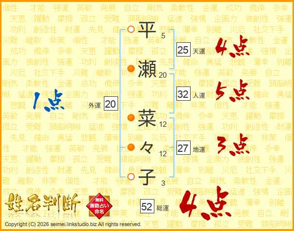 平瀬菜々子さんの総運は52画の4点!