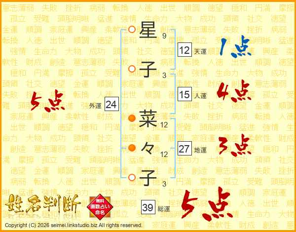 星(9画)子(3画) 菜(12画)々(12画)子(3画)