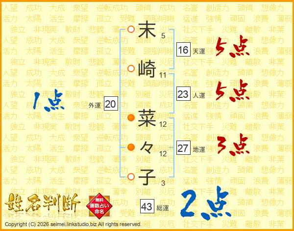 末崎菜々子さんの総運は43画の2点!