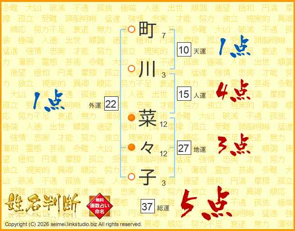 町川菜々子さんの総運は37画の5点!
