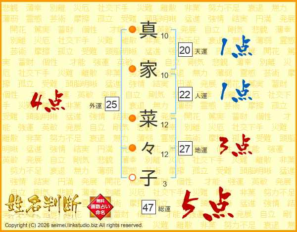 真家菜々子さんの総運は47画の5点!