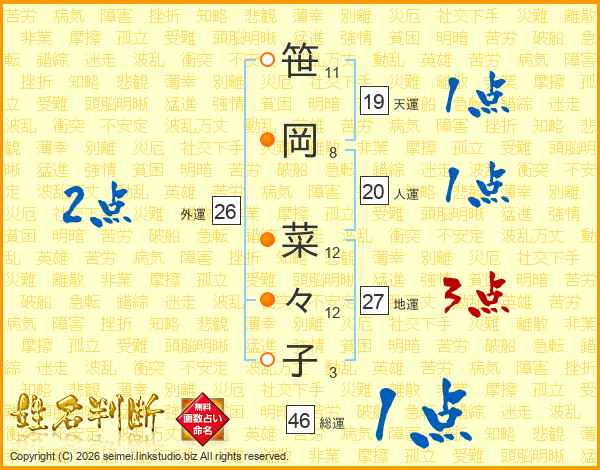 笹岡菜々子さんの総運は46画の1点!