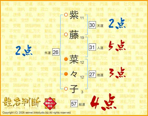 紫藤菜々子さんの総運は57画の4点!