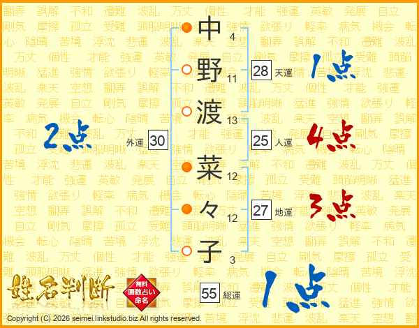 中野渡菜々子さんの人運は25画の4点!