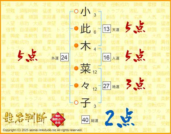 小此木菜々子さんの天運は13画の5点!