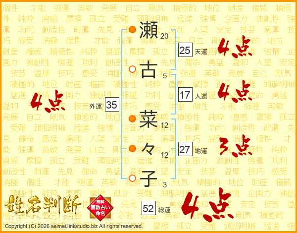 瀬古菜々子さんの総運は52画の4点!