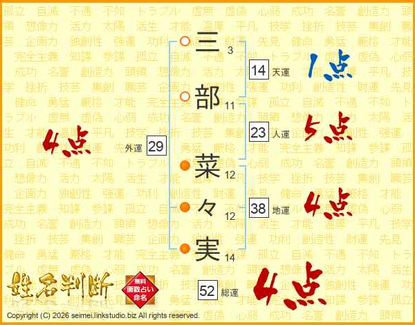 三部菜々実さんの総運は52画の4点!