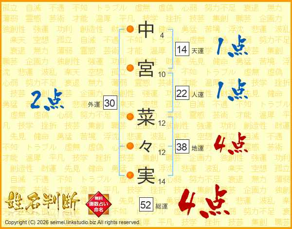 中宮菜々実さんの総運は52画の4点!
