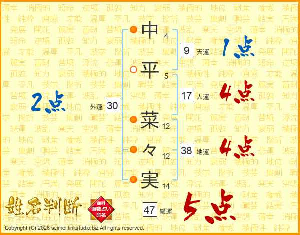 中平菜々実さんの総運は47画の5点!