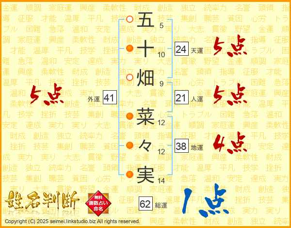 五十畑菜々実さんの天運は24画の5点!