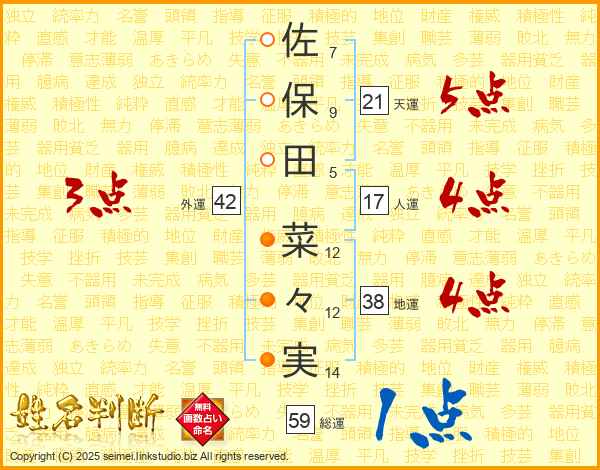佐保田菜々実さんの地運は38画の4点!