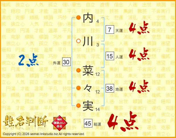 内川菜々実さんの総運は45画の4点!