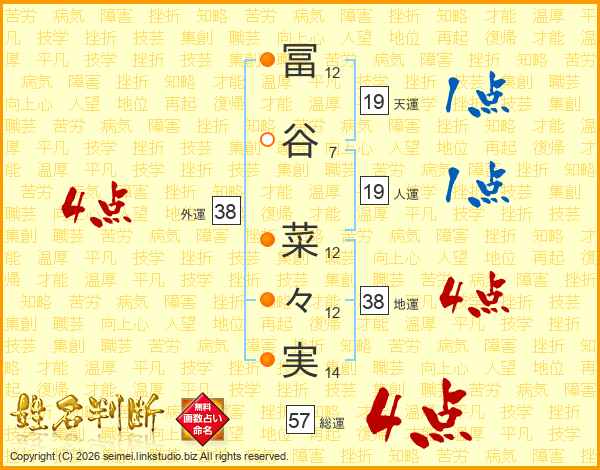 冨谷菜々実さんの外運は38画の4点!