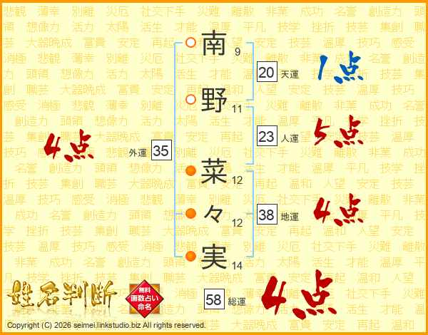 南野菜々実さんの総運は58画の4点!