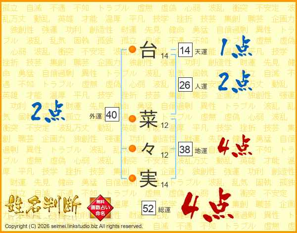 台菜々実さんの総運は52画の4点!