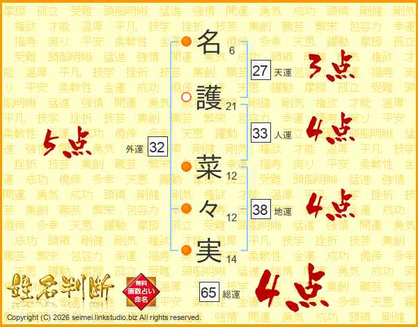 名護菜々実さんの総運は65画の4点!