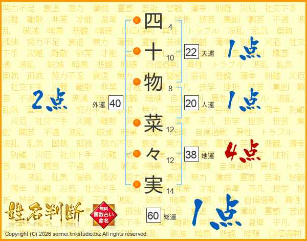 四十物菜々実さんの総運は60画の1点!