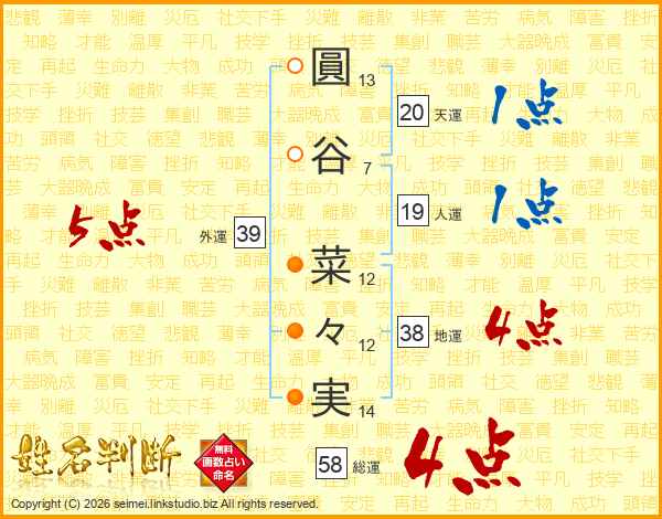 圓谷菜々実さんの総運は58画の4点!
