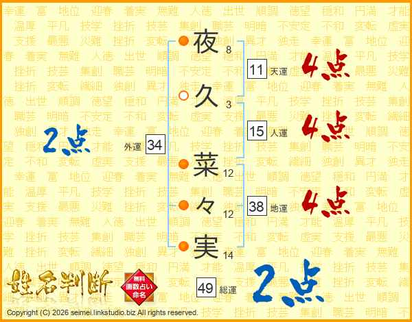 夜久菜々実さんの総運は49画の2点!