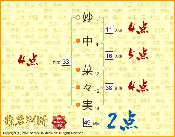 妙中菜々実さんの総運は49画の2点!