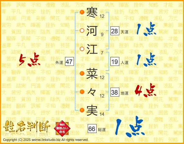 寒(12画)河(9画)江(7画) 菜(12画)々(12画)実(14画)
