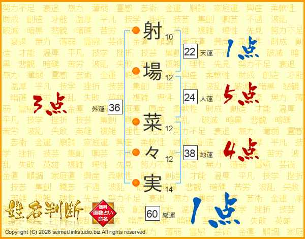 射場菜々実さんの総運は60画の1点!